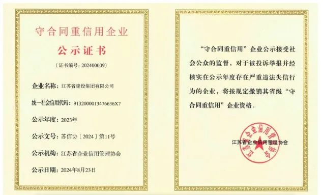 自2003年bwin必赢电子唯一官网首次获得省级“守合同重信用”企业称号以来,长年保持该项殊荣,公司将以再次获得“守合同重信用”企业为契机,进一步加强合同管理和信用建设,不断提升企业的核心竞争力,为客户提供更加优质、可靠的产品和服务,为推动建筑行业的健康发展贡献更多力量。