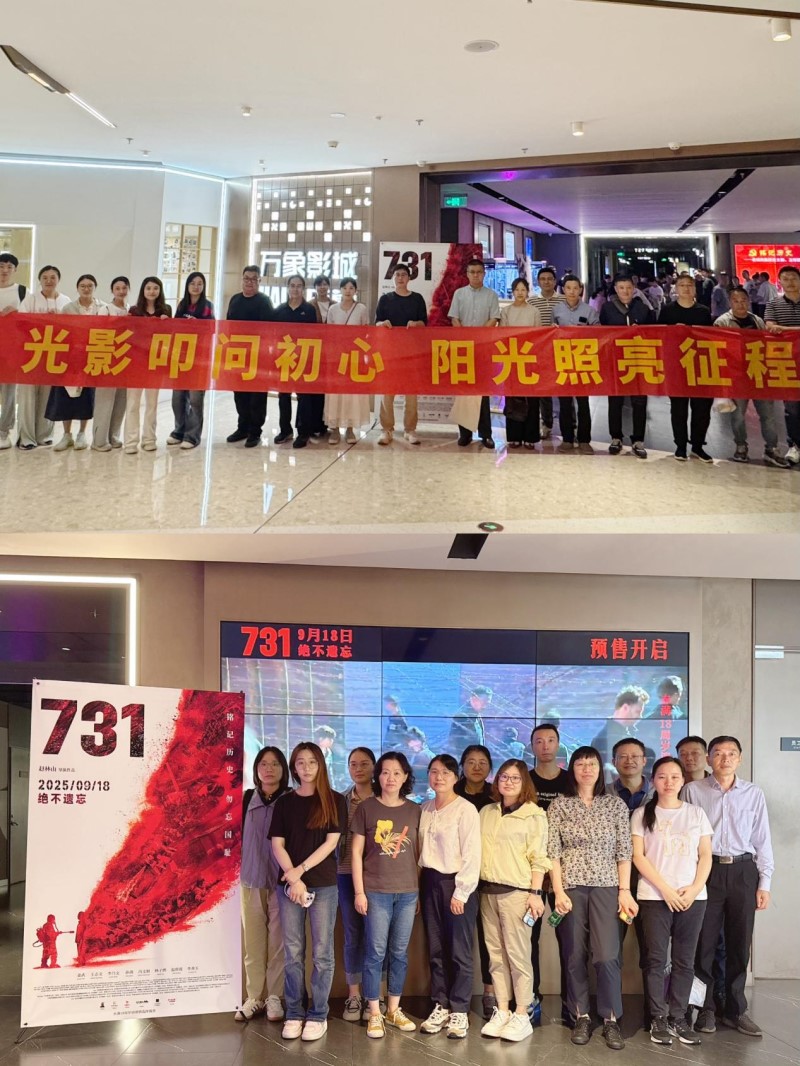 《731》影片以详实史料揭露了侵华日军731部队在二战期间进行人体实验、细菌战等反人类罪行,直观展现了战争的残酷与和平的珍贵。观影现场气氛凝重,员工们神情专注,深受震撼。