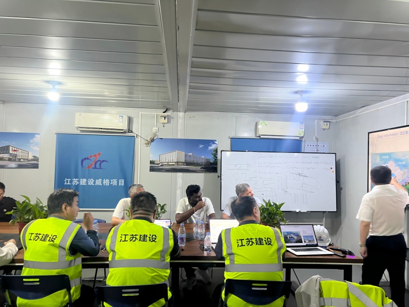 威格项目临时党支部聚焦公司人才发展需求,深化思想教育与技能提升融合聚力,创新丰富学习载体。临时党支部每周三开展“先锋讲堂”,既讲党的创新理论,也教BIM建模、地源热泵等施工新技术。项目部分别与南通大学土木工程学院、德国斯图加特大学开展技术交流研讨,深化校企合作,推进新工艺、新技术运用,有力提升项目管理人员业务技能。