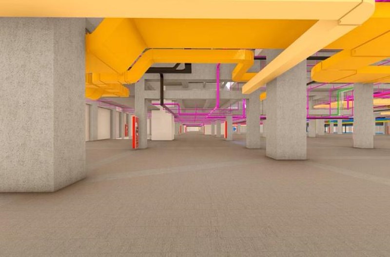 项目全程应用BIM技术,覆盖设计、生产、施工、管理全周期。设计阶段,各专业设计师依托BIM模型协同优化管线布置、分析空间净高,提前规避设计隐患;机电管综工程中,通过BIM模型1:1还原机电管线布局,施工前模拟定位,有效解决 “错漏碰撞” 难题,安装完成后还通过实际施工与BIM模型比对校核,确保施工准确率。